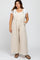 Details A pair of linen maternity overalls featuring a button closure, a pleated waist, wide pant legs and side pockets. Content + Care