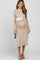 Beige Mock Neck Flared Maternity Midi Dress
