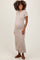 Beige Ribbed Short Sleeve Maternity Midi Dress
