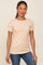 A solid ribbed top featuring short sleeves and a rounded neckline.