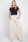 A pair of ultra-soft knit fleece pants featuring double elastic waistbands and side pockets.
