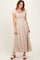 Beige Square Neck Smocked Top Criss Cross Back Tie Maxi Dress