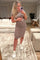 Beige Striped Side Slit Fitted Maternity Midi Dress