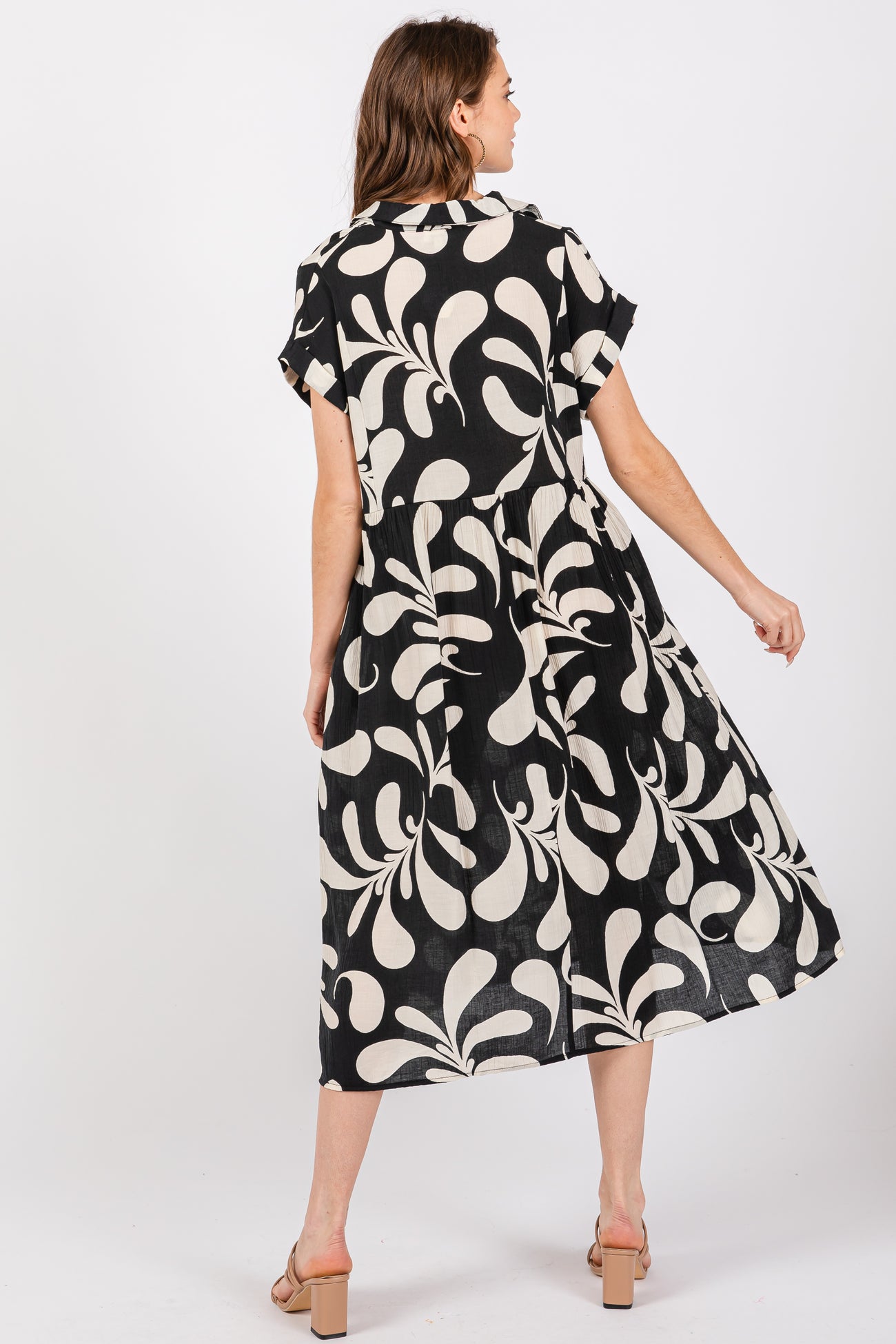 Black Abstract Print Collared Dress