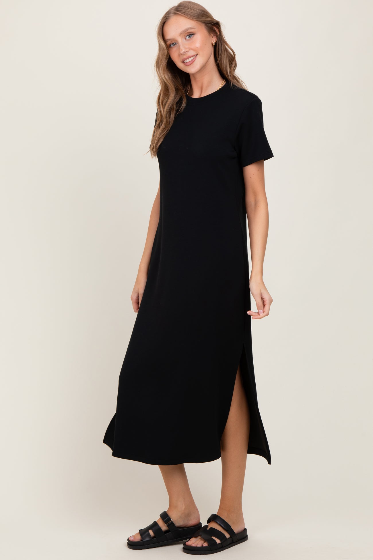 Effortlessly chic and incredibly comfortable, our Black Basic Side Slit Short Sleeve Midi Dress is a must-have wardrobe staple. Designed with a relaxed fit, this dress features a classic crew neckline and short sleeves, perfect for everyday wear. The midi length adds a sophisticated touch, while the side slit ensures ease of movement and a subtle hint of style. Crafted from soft, breathable fabric, it’s ideal for warm days or layered with your favorite jacket. Pair it with sandals for a casual look or dress it up with accessories for an easy-going yet polished outfit. Your new go-to dress awaits!
