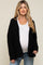 A brushed soft knit maternity cardigan featuring long sleeves, an open front, side pockets and side slits.