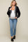 A solid maternity cardigan with a colorblock accents and button down front closure.