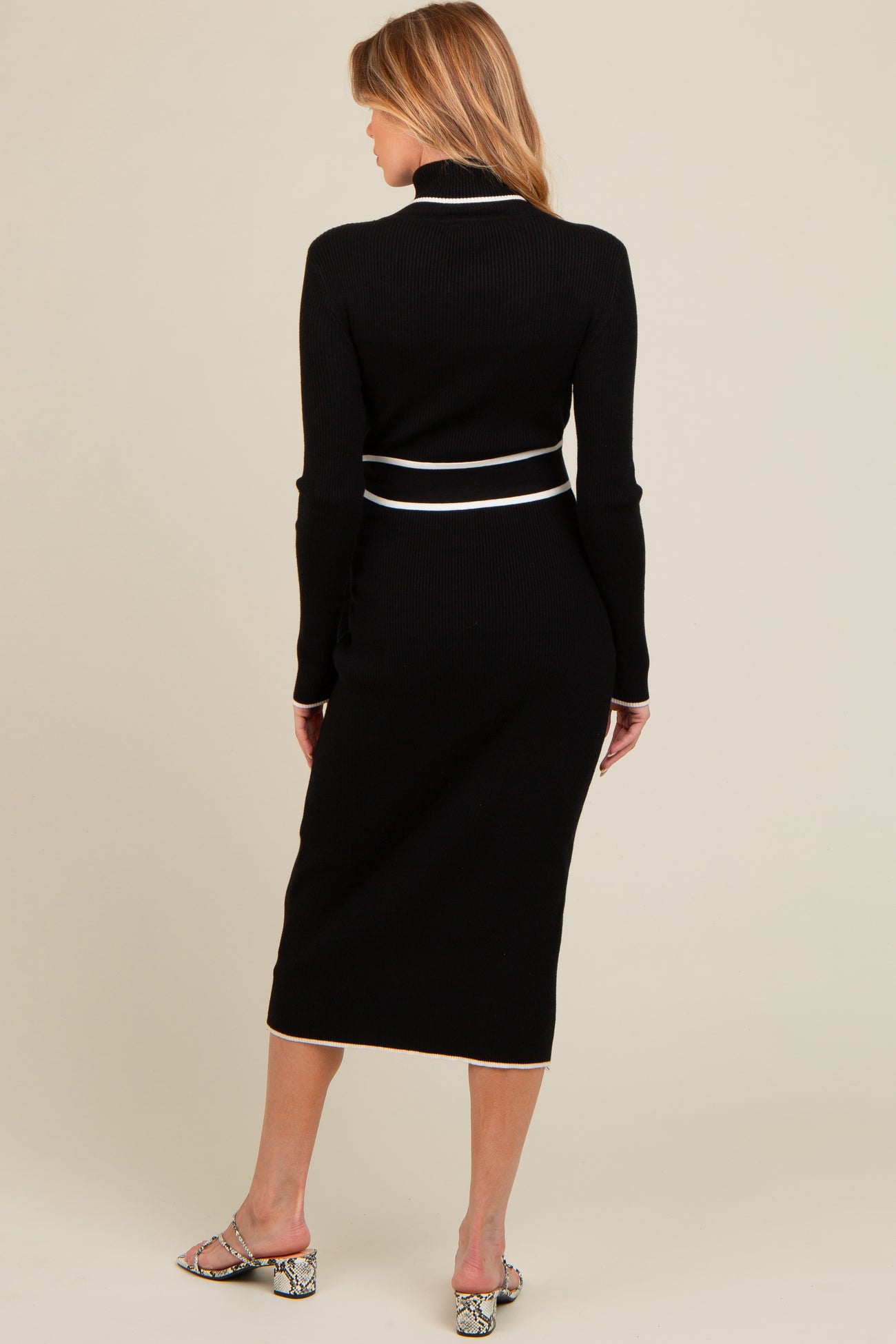 Black Contrast Trim Turtleneck Maternity Sweater Dress