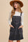 A denim overall dress featuring five pockets and adjustable shoulder straps.