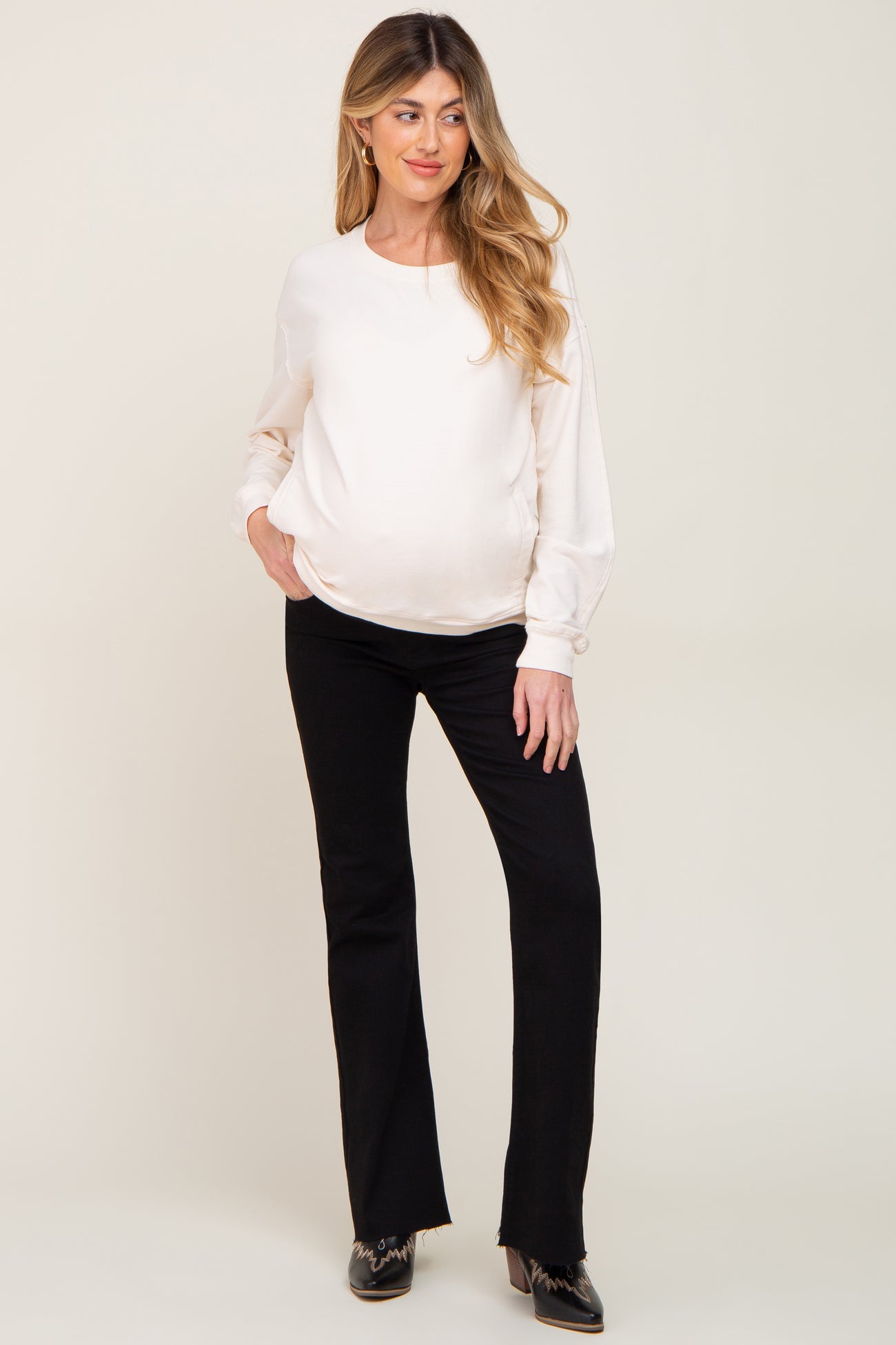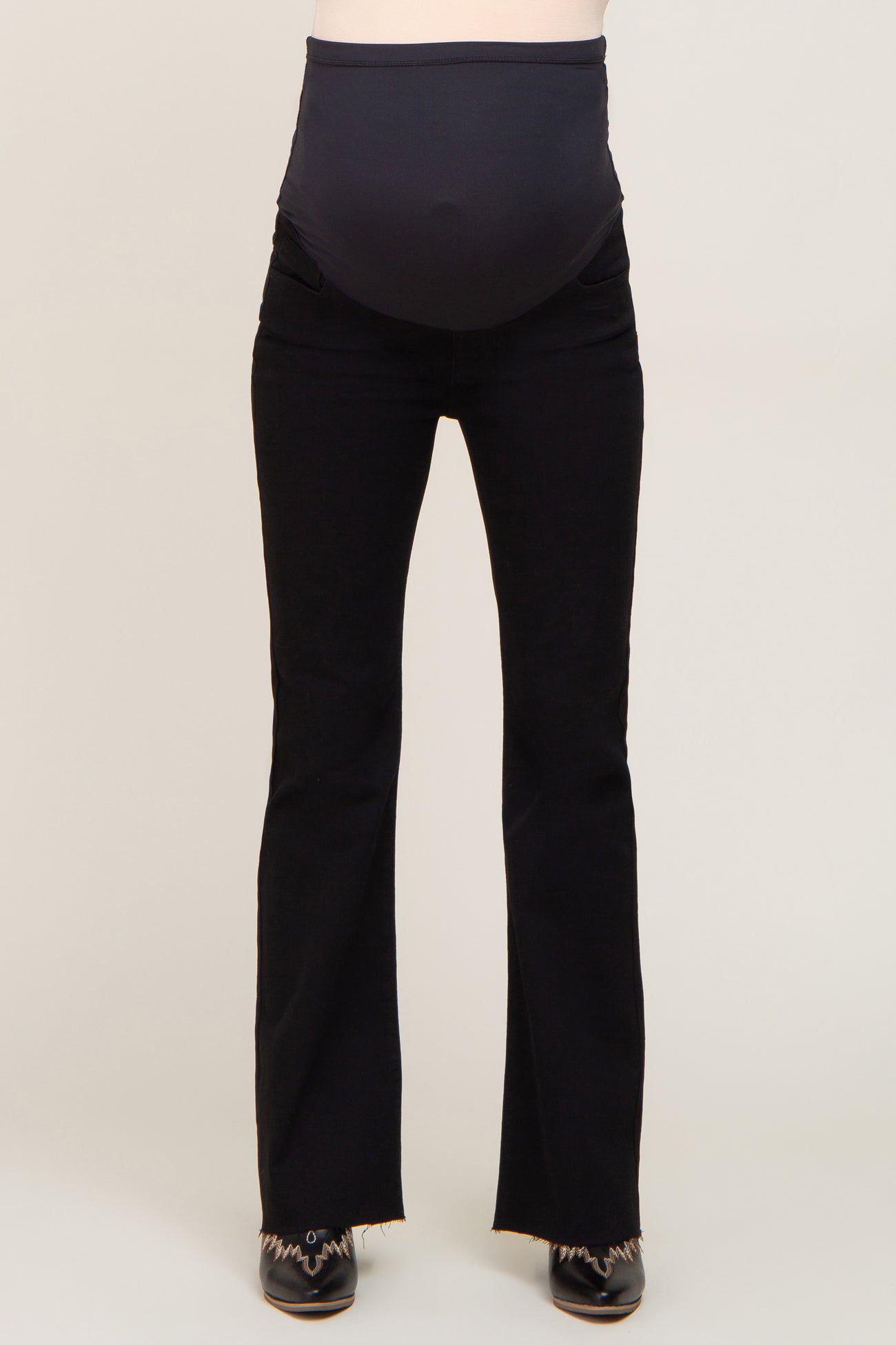 Step out in style and comfort with our Black Flare Leg Raw Hem Maternity Jeans! Designed with expecting moms in mind, these jeans feature a flattering flare leg that elongates the silhouette and trendy raw hem details for a modern edge. The over-belly stretch panel offers gentle support and a seamless fit throughout your pregnancy journey. Made from a soft, breathable fabric blend with plenty of stretch, these jeans move with you for all-day comfort. Pair them with your favorite top and sneakers for an effortless everyday look, or dress them up for a night out. Maternity style has never looked so good!