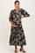 Black Floral 3/4 Sleeve Smocked Waist Maternity Midi Dress