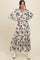 Step into effortless elegance with our Black Floral Button Front Tiered Long Sleeve Maxi Dress. Featuring a delicate black floral print on a crisp white background, this dress combines timeless charm with modern style. The button-front design and tiered skirt create a flattering, flowy silhouette, while the long sleeves add a touch of sophistication. Crafted from lightweight, breathable fabric, it's perfect for any season. Pair it with boots or sandals for a versatile look that takes you from day to night. Elevate your wardrobe with this must-have maxi dress today!
