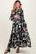 Black Floral Chiffon Ruffle Accent Button Down Maternity Maxi Dress