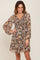 Black Floral Chiffon Smocked Ruffle Hem Dress