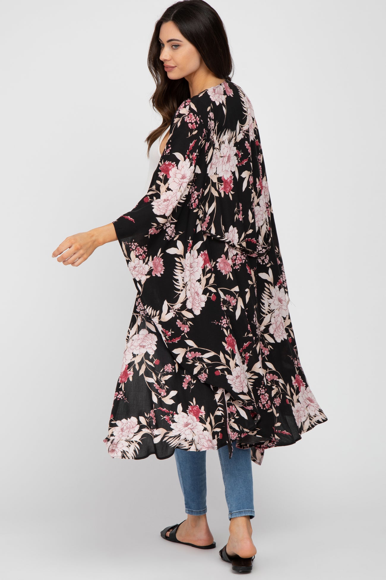 Black Floral Flowy Round Hem Maternity Cover-Up