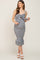 A floral print fitted maternity midi dress featuring a v-neckline with an adjustable front tie, a front cutout, adjustable tie straps and a ruffle hem.