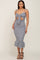 A floral print fitted midi dress featuring a v-neckline with an adjustable front tie, a front cutout, adjustable tie straps and a ruffle hem.