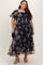 Black Floral Organza Square Neck Plus Midi Dress