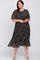 A chiffon plus size midi dress featuring a rounded neckline, short ruffle sleeves, a pleated skirt, a keyhole back with a button closure and double lined for added coverage.