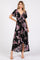 Black Floral Print Wrap Front V-Neck Hi-Low Midi Dress