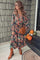 A floral print midi dress featuring a split v-neckline with ruffle trim and a tassel tie, long sleeves with a smocked wrist and a tiered skirt.