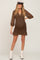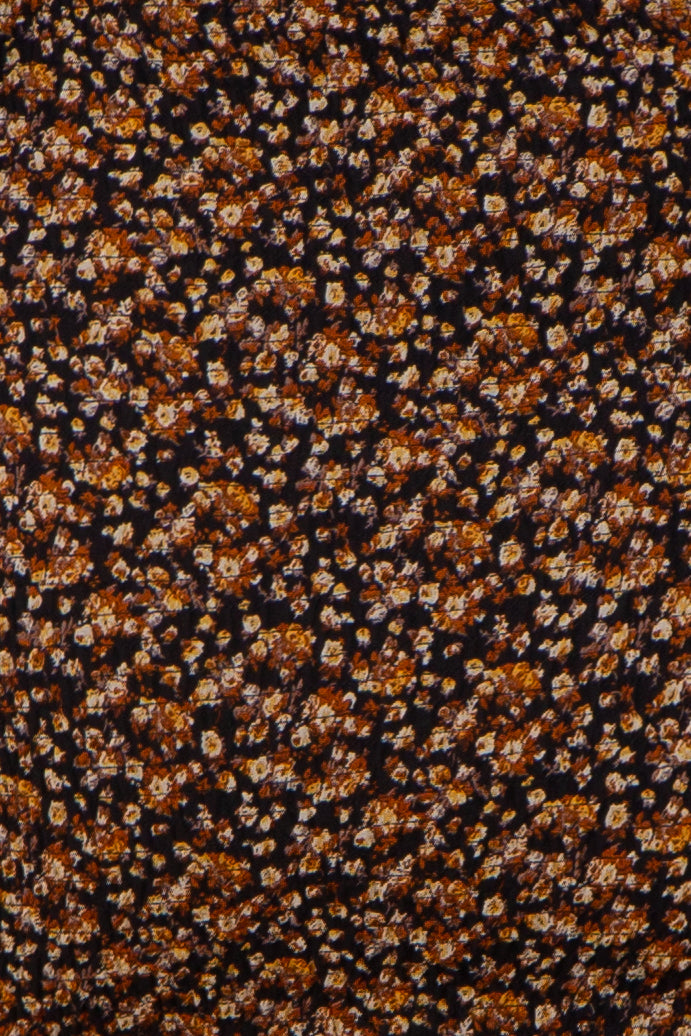 A multi-color floral maternity mini dress featuring half-length puff sleeves, a smocked skirt, a ruffle hem and a v-neckline.