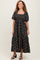 Black Floral Smocked Square Neck Short Puff Sleeve Midi Dress