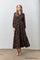 Black Floral Smocked Waist Long Sleeve Midi Dress