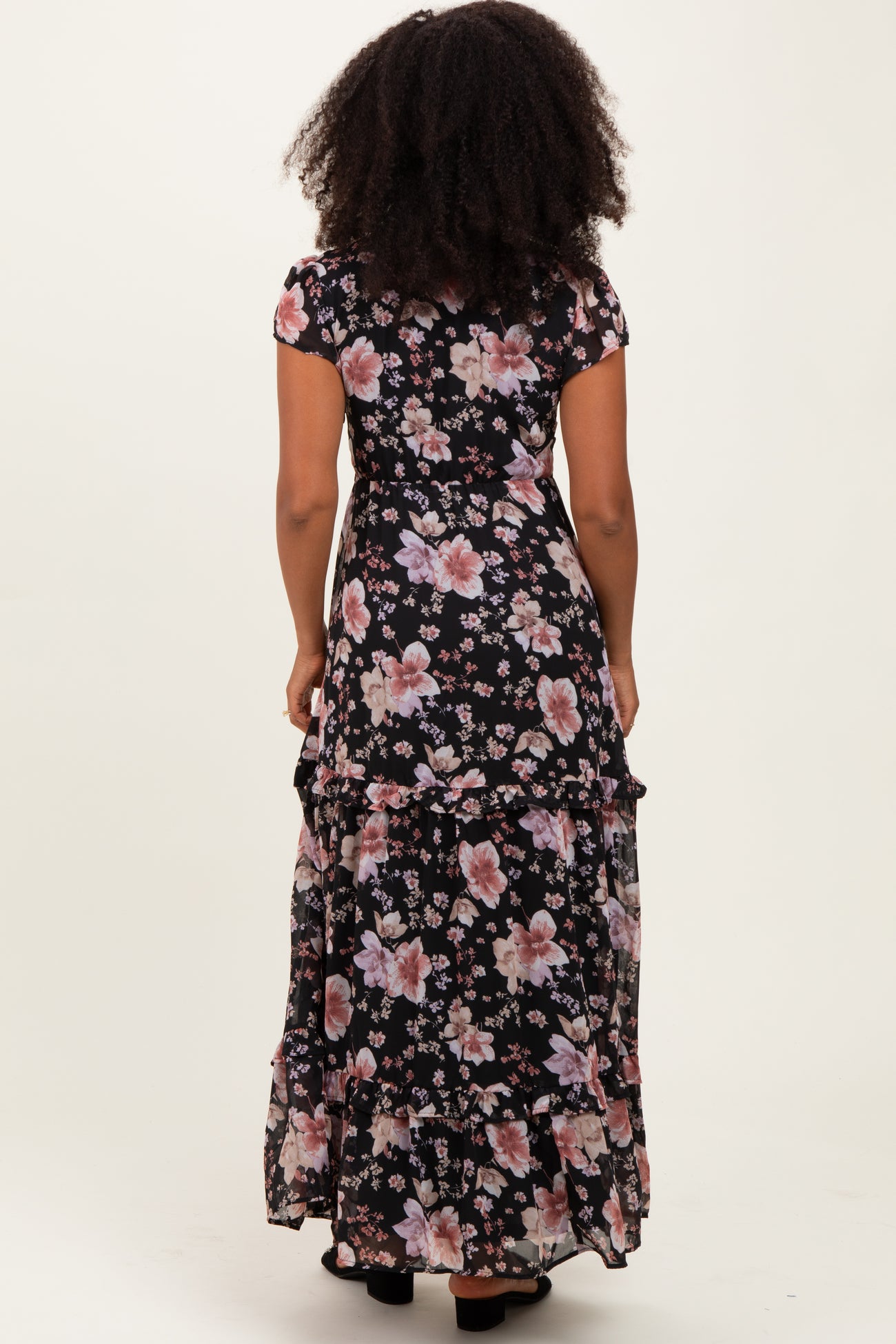 Step into effortless elegance with our Black Floral V-Neck Side Slit Maxi Dress. Featuring a flattering deep V-neckline and delicate flutter sleeves, this dress showcases a romantic floral print on a classic black background. The side slit adds a touch of allure and movement, while the tiered ruffle hem enhances its feminine charm. Made from lightweight, flowy fabric, it’s perfect for warm days and special occasions alike. Pair it with sandals or heels for an effortlessly chic look. Available in multiple sizes, this maxi dress is your go-to piece for timeless style and comfort.