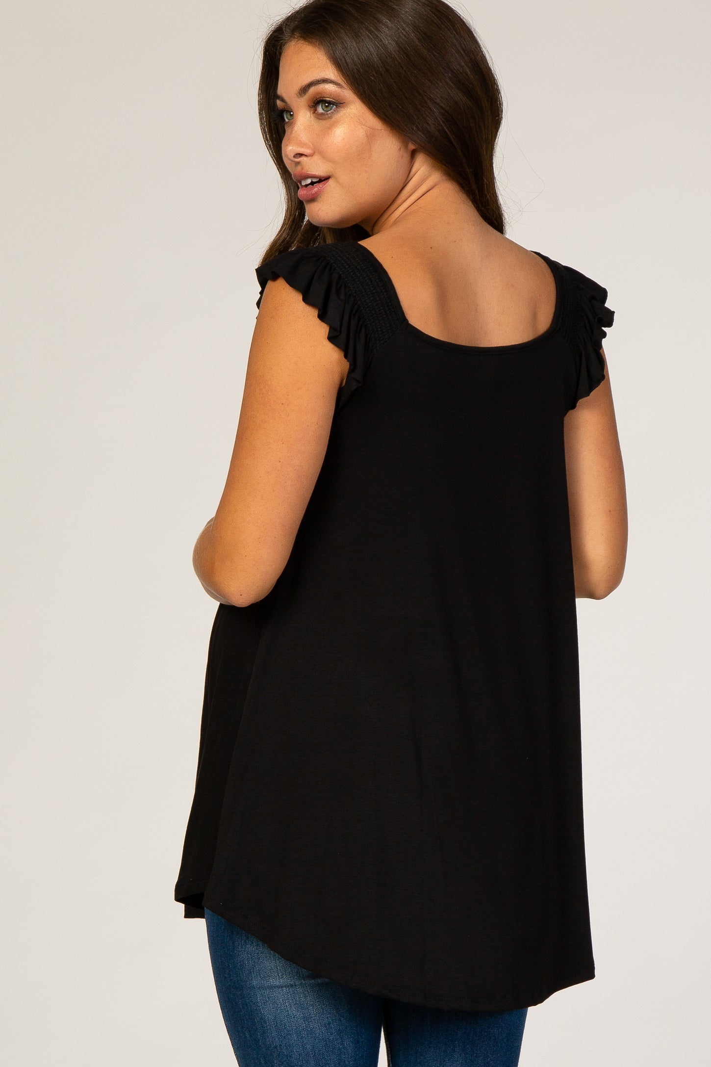 Black Flutter Sleeve Maternity Top