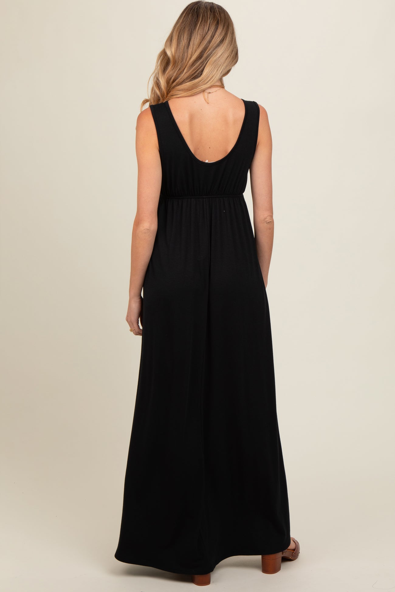 Black Front Tie Cutout Sleeveless Maternity Maxi Dress