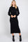 A knit hooded midi dress featuring long sleeves and a cinched waist.