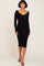 A solid ribbed knit fitted midi dress with long sleeves and a wide v-neckline.