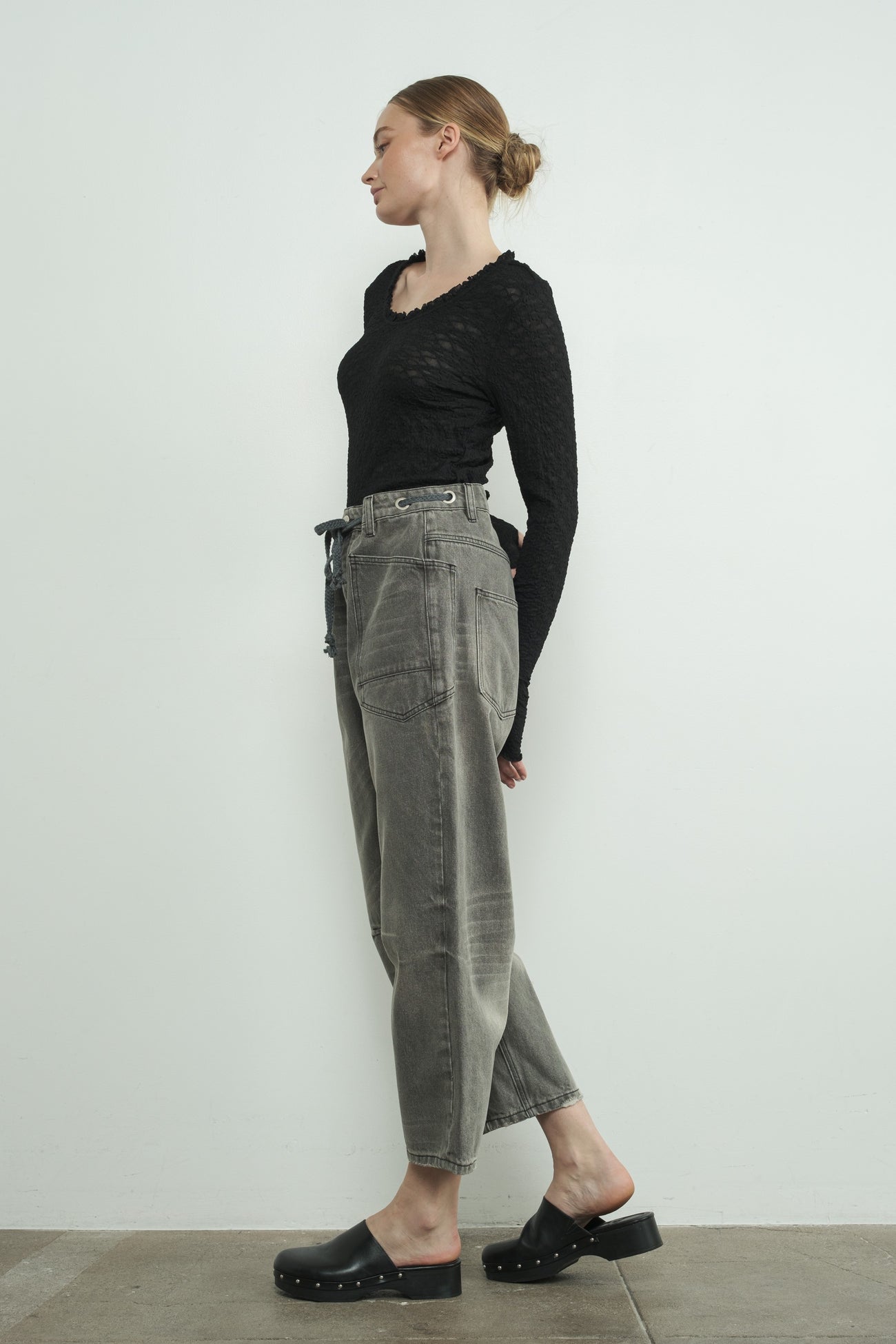 Elevate your wardrobe with this Black Lace Ruffle Neckline Long Sleeve Top, designed for effortless elegance and comfort. Crafted from delicate lace fabric, this top features a flattering ruffle-trimmed neckline that adds a touch of romantic charm. The fitted silhouette and long sleeves make it perfect for layering or wearing alone on cooler days. Pair it with high-waisted jeans or a skirt for a chic, sophisticated look that transitions seamlessly from day to night. Ideal for date nights, casual outings, or special occasions. Embrace timeless style with a modern twist in this must-have lace top.
