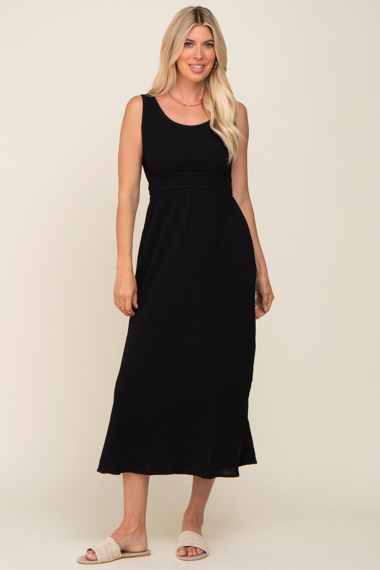 Black Lightweight Sleeveless Open Back Maternity Maxi Dress