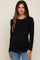 A solid maternity top featuring long sleeves and a rounded neckline.