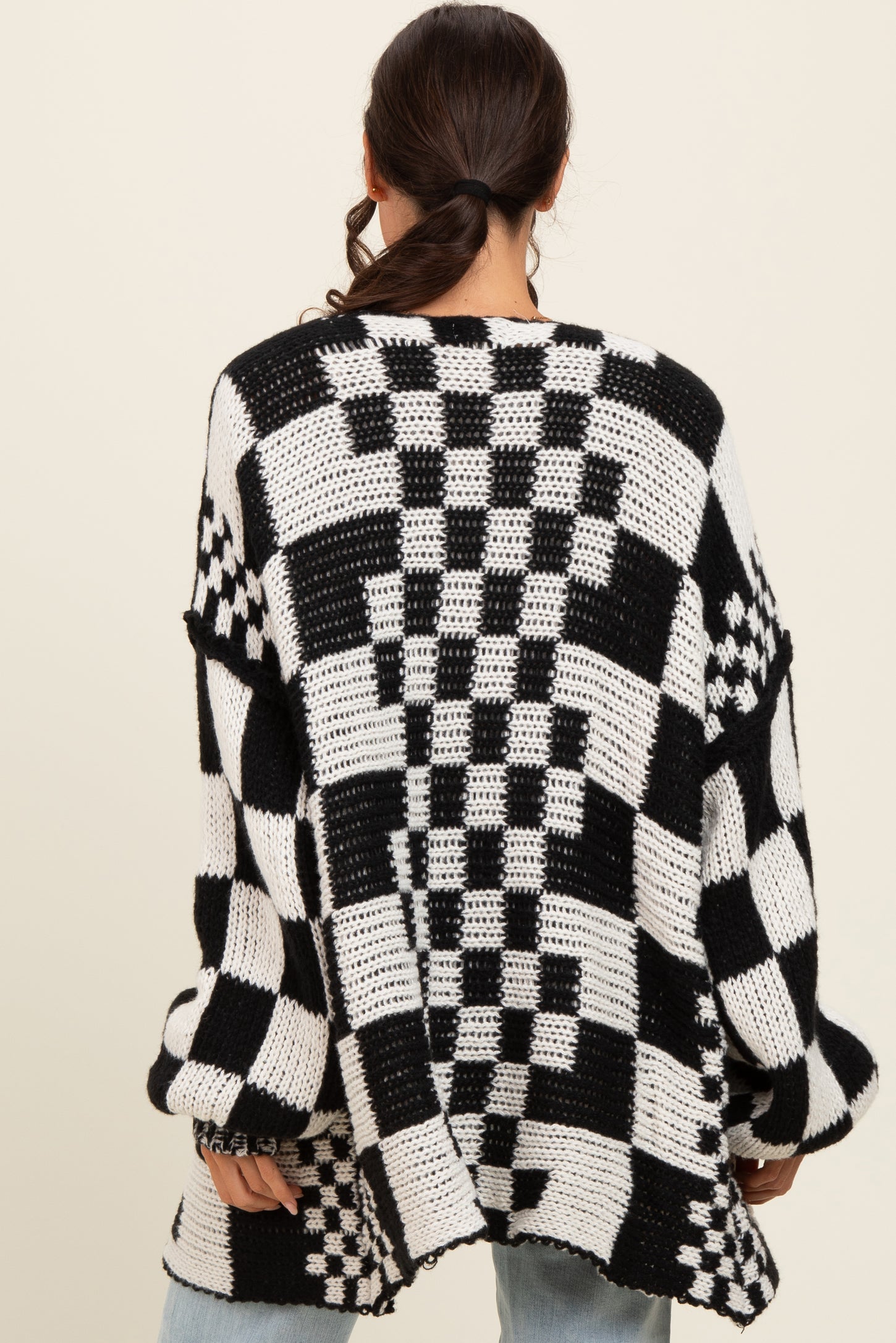 Stay cozy and stylish with our Black Mixed Check Pattern Chunky Cardigan. Crafted with a bold black and white check design, this oversized cardigan features a chunky knit texture that adds warmth and a trendy edge to any outfit. The open front and balloon sleeves with ribbed cuffs create a relaxed, comfortable fit perfect for layering over your favorite tees or tops. Versatile and eye-catching, this cardigan pairs effortlessly with jeans or leggings for everyday wear. Elevate your fall and winter wardrobe with this statement piece that’s both chic and cozy.