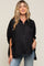 An oversized maternity blouse featuring a collared neckline and a button down front.