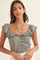 Black Plaid Boat Self-Tie Halter Gathered Bodysuit