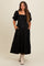 Black Pleated Bodice Puff Sleeve Maternity Midi Dress