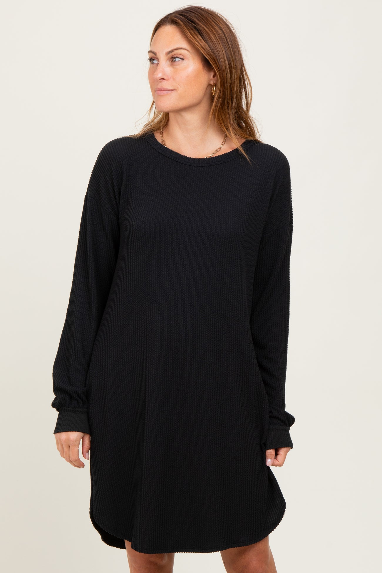 Elevate your casual wardrobe with this Black Rib Knit Long Sleeve Dress. Crafted from a soft, breathable ribbed fabric, it offers comfort and style all day long. The relaxed fit and slightly curved hem create a flattering silhouette, while the long sleeves provide warmth for cooler days. Perfect for pairing with your favorite boots or sneakers, this versatile dress is an effortless choice for everyday wear. Dress it up or down for a chic look that never goes out of style. Available in multiple sizes to suit your perfect fit. Your new go-to basic is here!