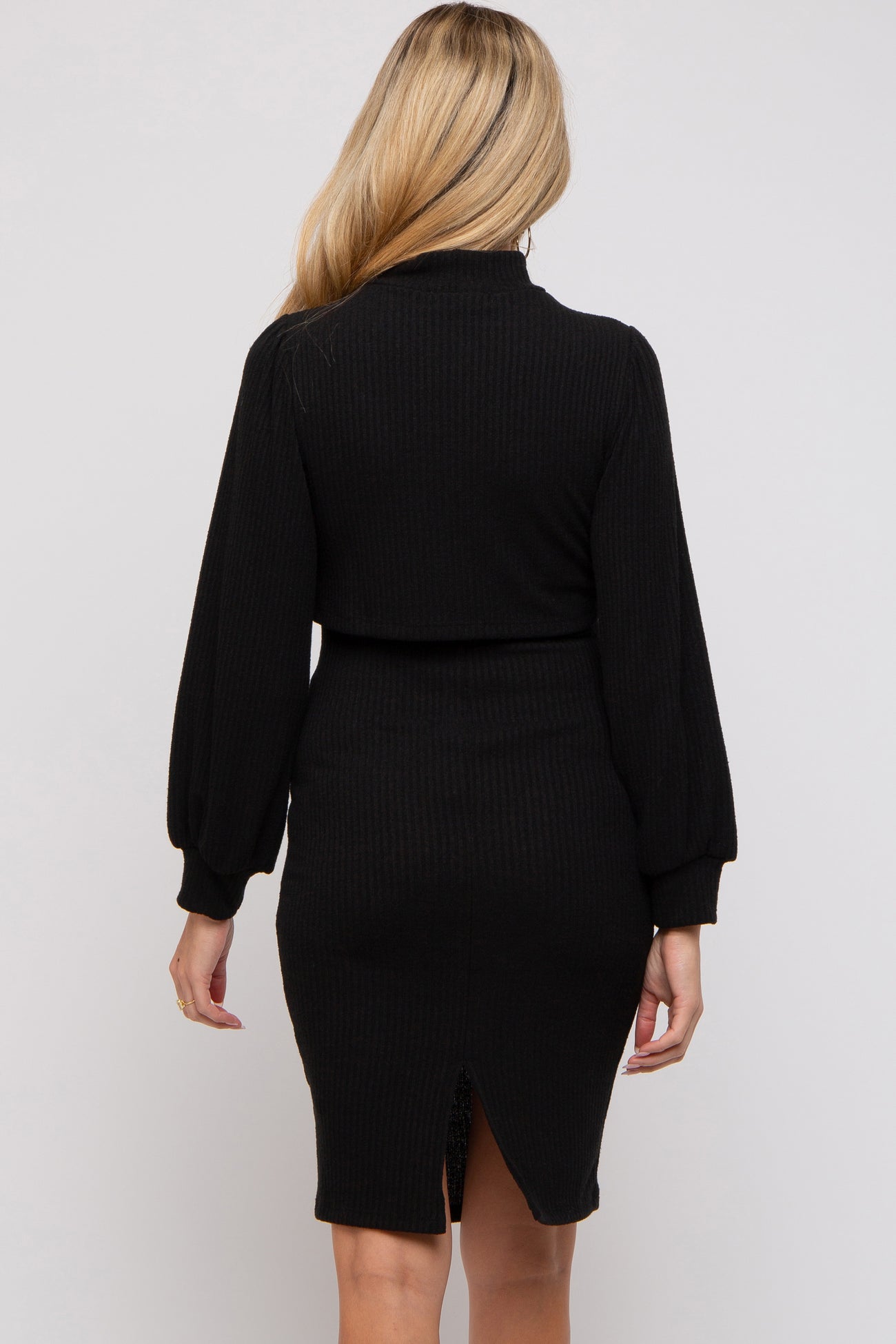 Black Rib Mock Neck Maternity Nursing Dress