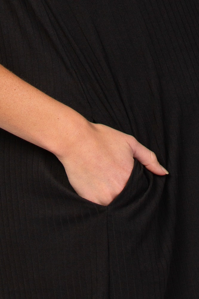 Black Ribbed Curved Hem Maternity Midi Dress