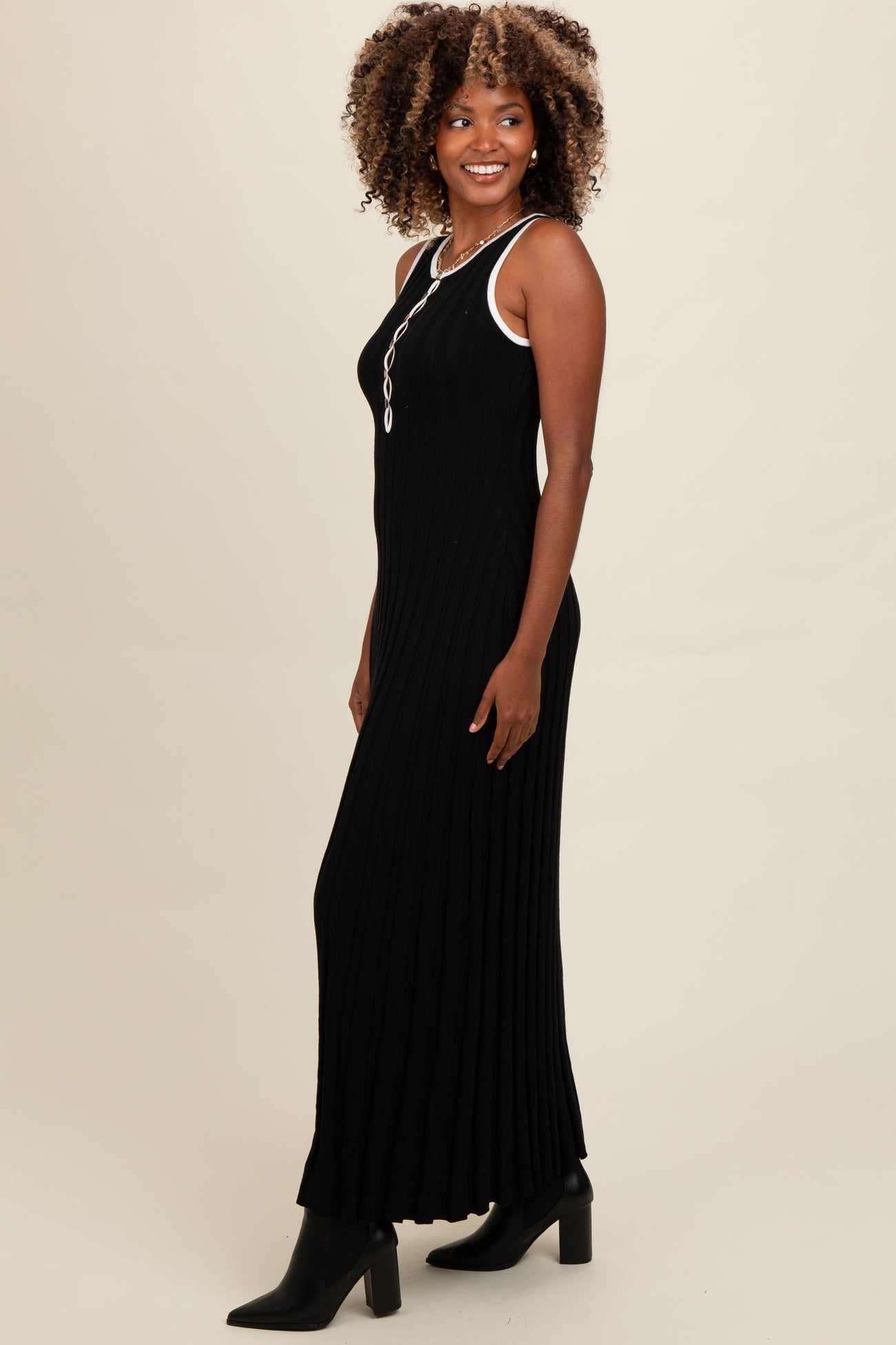 Black Ribbed Knit Button Detail Sleeveless Maxi Dress