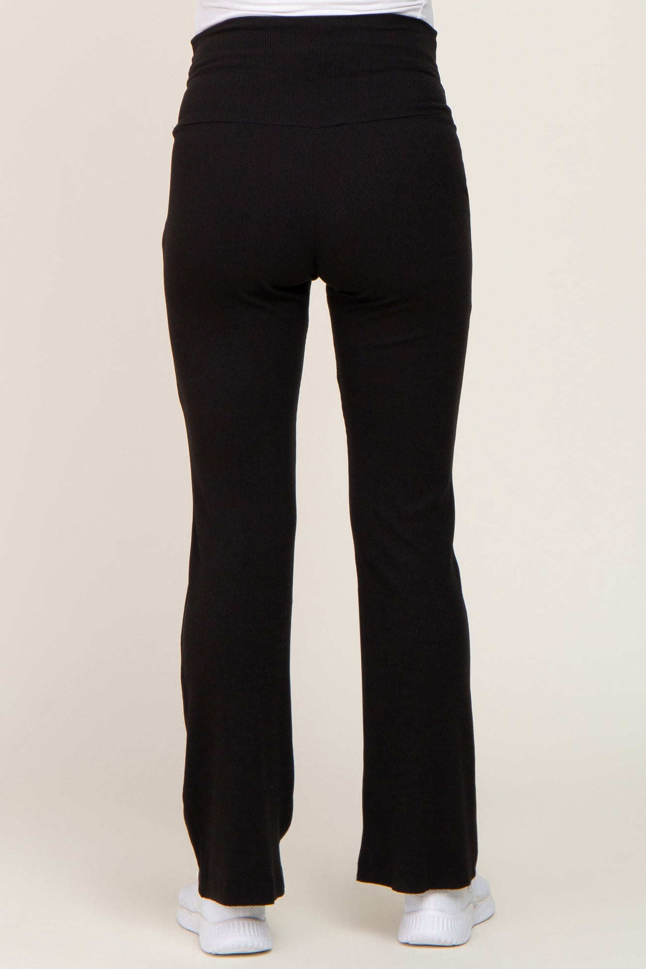 A pair of basic maternity pants in a ribbed material with a slight flare leg.