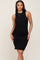 A solid fitted midi dress in a ribbed material with side ruching on both sides.