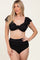 Black Ribbed Ruffle Shoulder Front Tie High Waist Two-Piece Swimsuit