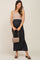A ribbed maternity midi skirt featuring an elastic waistband and a side slit.