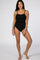 A soild hued, ribbed on piece swimsuit featuring cinched side ties at hips, a square neckline, adjustable straps, ruched sides, removeable padded cups, built in bra, metal buckle clasp, U shaped cutout on back and a double lining. This style runs small.