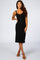 Black Ribbed Snap Button Front Fitted Midi Dress
